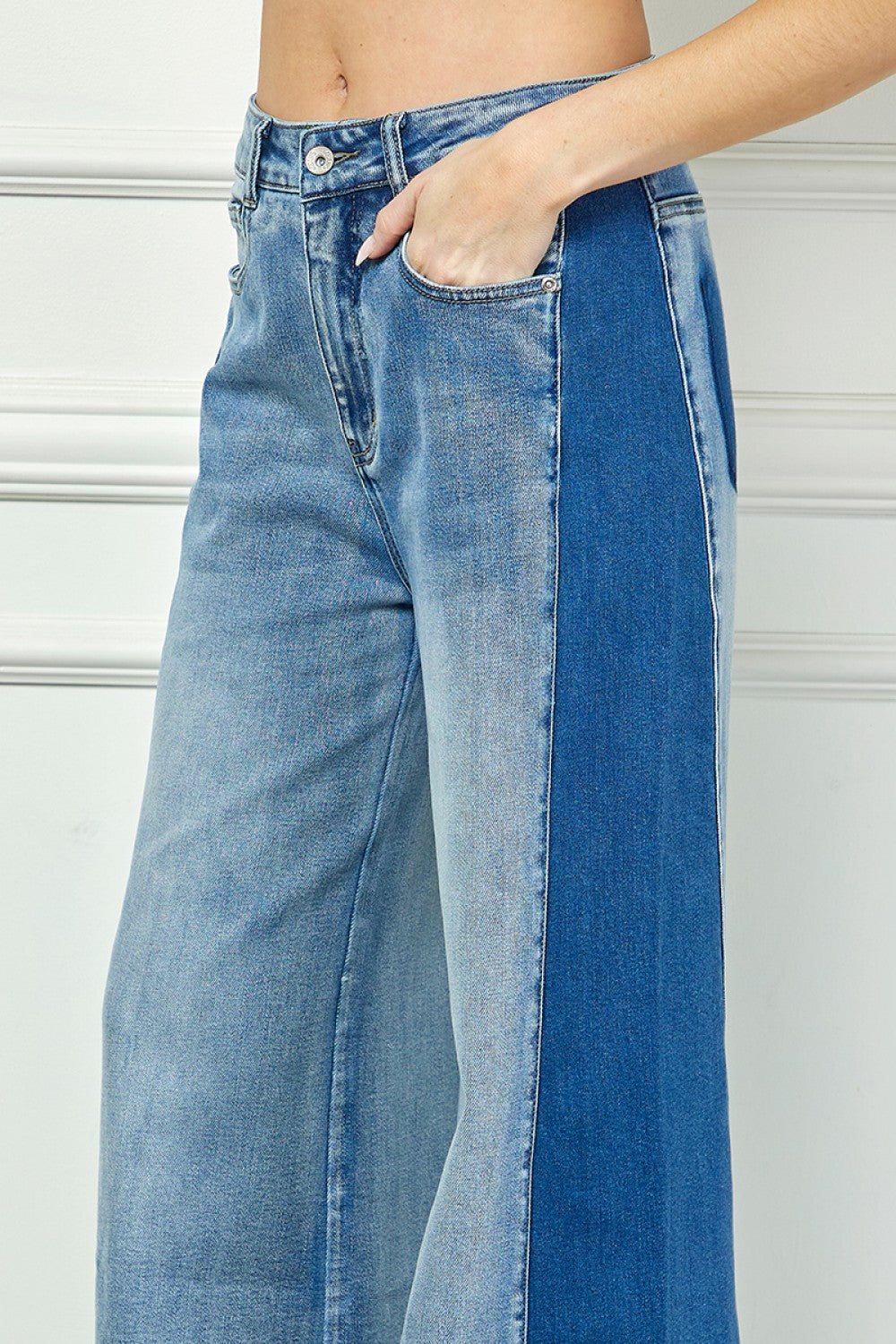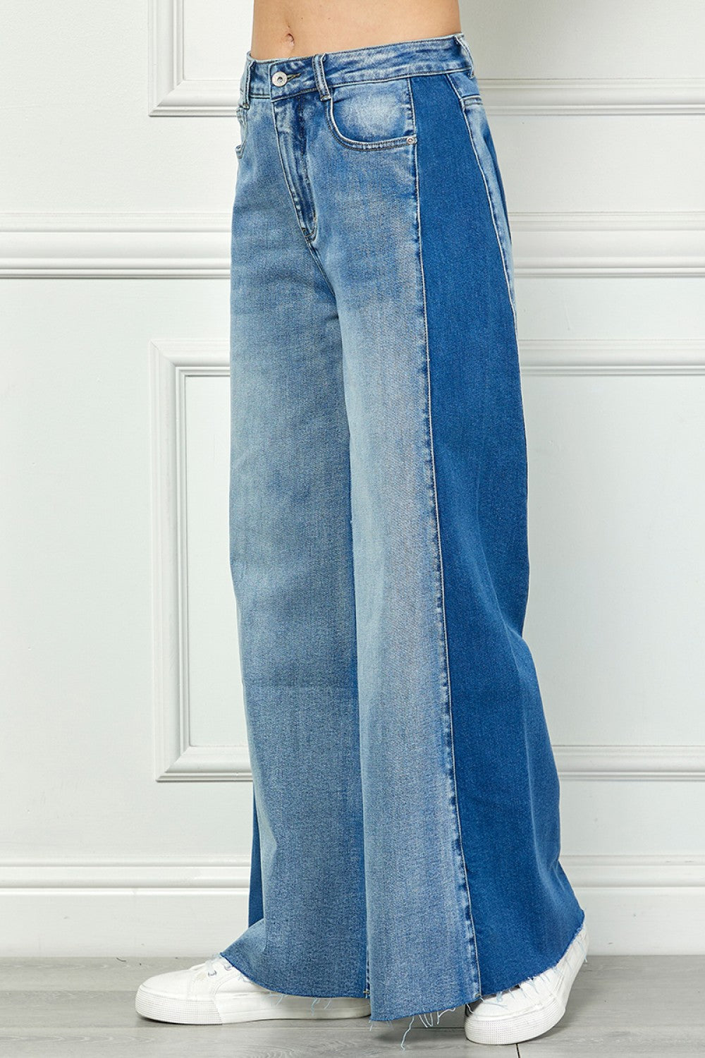 Two-Tone Wide Leg Jeans